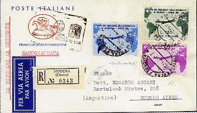 colore più scuro l'Italia e lo stato cui il francobollo era dedicato (Argentina,
