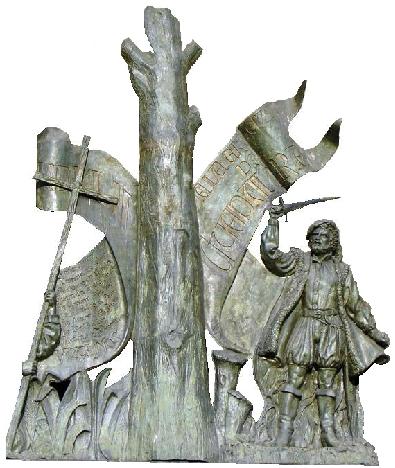 Oñate pianta il suo pugnale nel tronco di un albero nel luogo